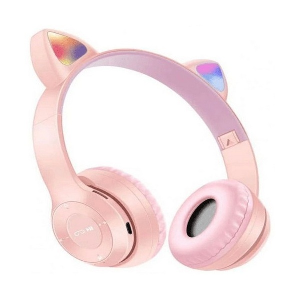 Le casque sans fil P47M se distingue par son design ludique à oreilles de chat intégrant des effets lumineux LED, ce qui en fait un accessoire populaire pour les enfants et adolescents.