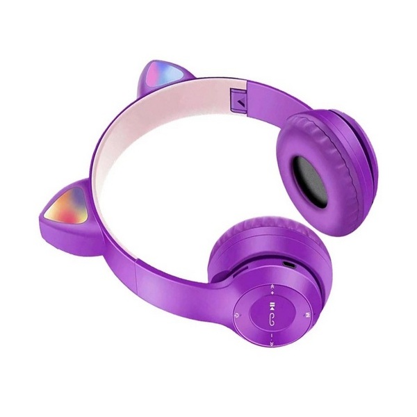 Le casque sans fil P47M se distingue par son design ludique à oreilles de chat intégrant des effets lumineux LED, ce qui en fait un accessoire populaire pour les enfants et adolescents.