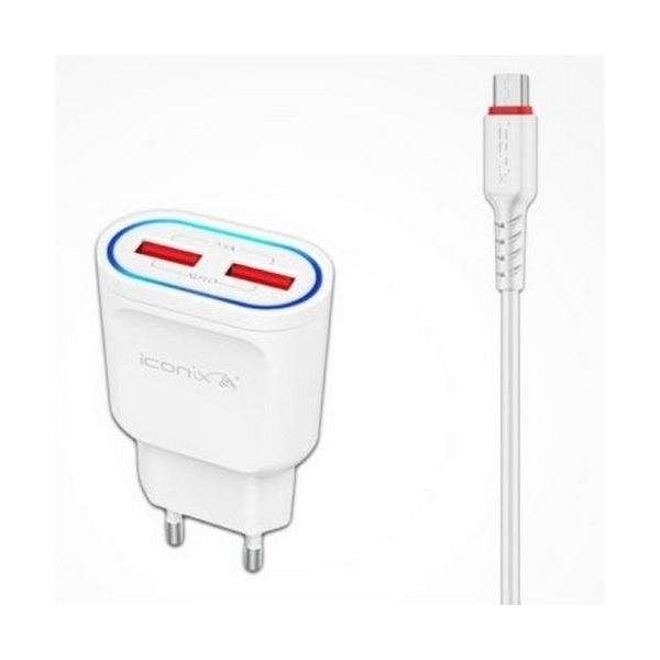 Chargeur ICONIX IC-HC1022 2.4A avec 2 Ports USB & Cable USB vers Micro USB