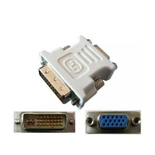 Adaptateur DVI vers VGA – Connecteur DVI-I mâle 24+5 broches – Connecteur VGA femelle 15 broches – Résolution maximale supportée 1920 x 1080 (Full HD) – Boîtier compact en ABS robuste