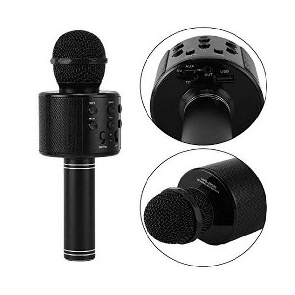 Microphone Karaoké et Haut Parleur Sans Fil Rechargeable KTV WS-858 – Noir